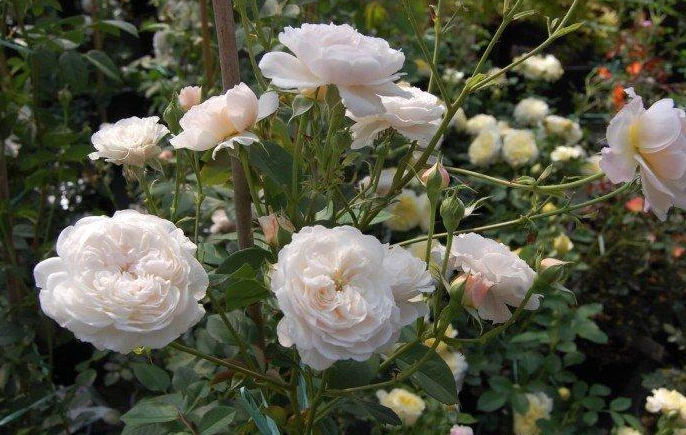 Мускусная кустовая роза отличается белоснежным цветением и крупными бутонами до 5 см в диаметре. У цветков необычная форма – по