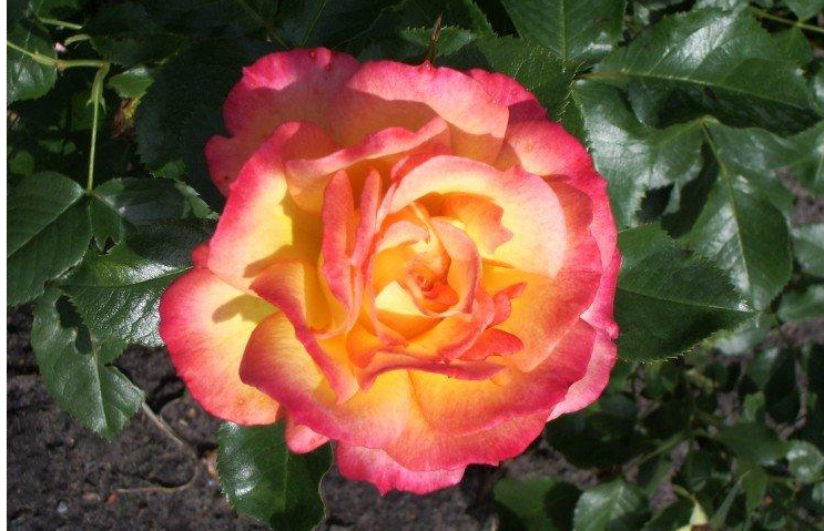 За необычным названием скрывается такая же необычная расцветка. Лепестки кустовой розы Бонанза насыщенного золотистого оттенка