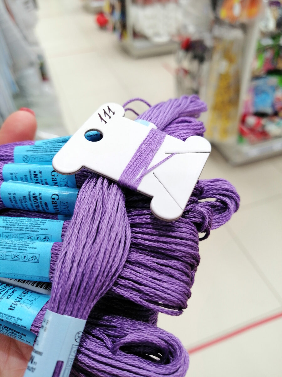Если присмотритесь, то увидите, что верхний ряд лилового оттенка блестит чуть больше. Это как раз новый моток.