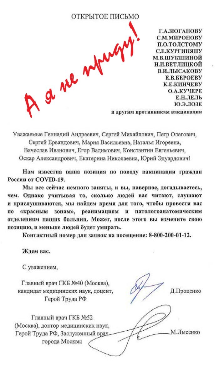 Карлики против титанов (какой был ответ на письмо врачей)