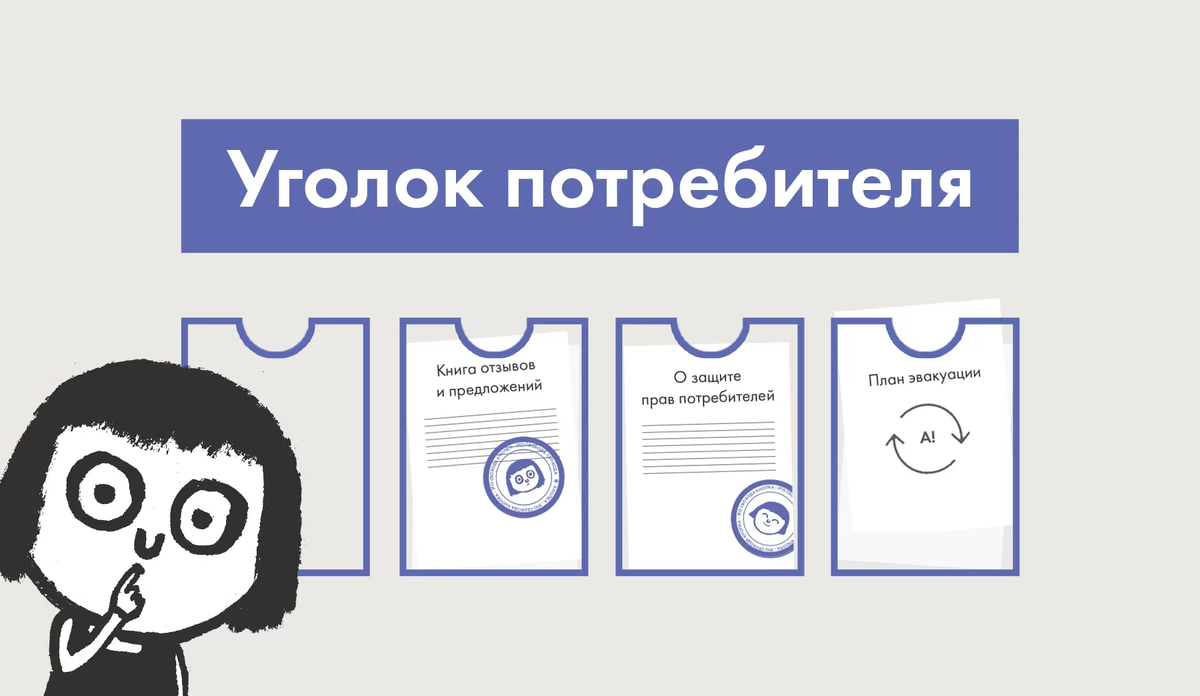 Находясь по ту сторону кассы они обязаны сообщать информацию о себе и своих продуктах и доводить её до потребителей в наглядной, доступной форме. Чтобы соблюсти все условности, была выбрана удобная форма хранения документов в виде уголка потребителя.