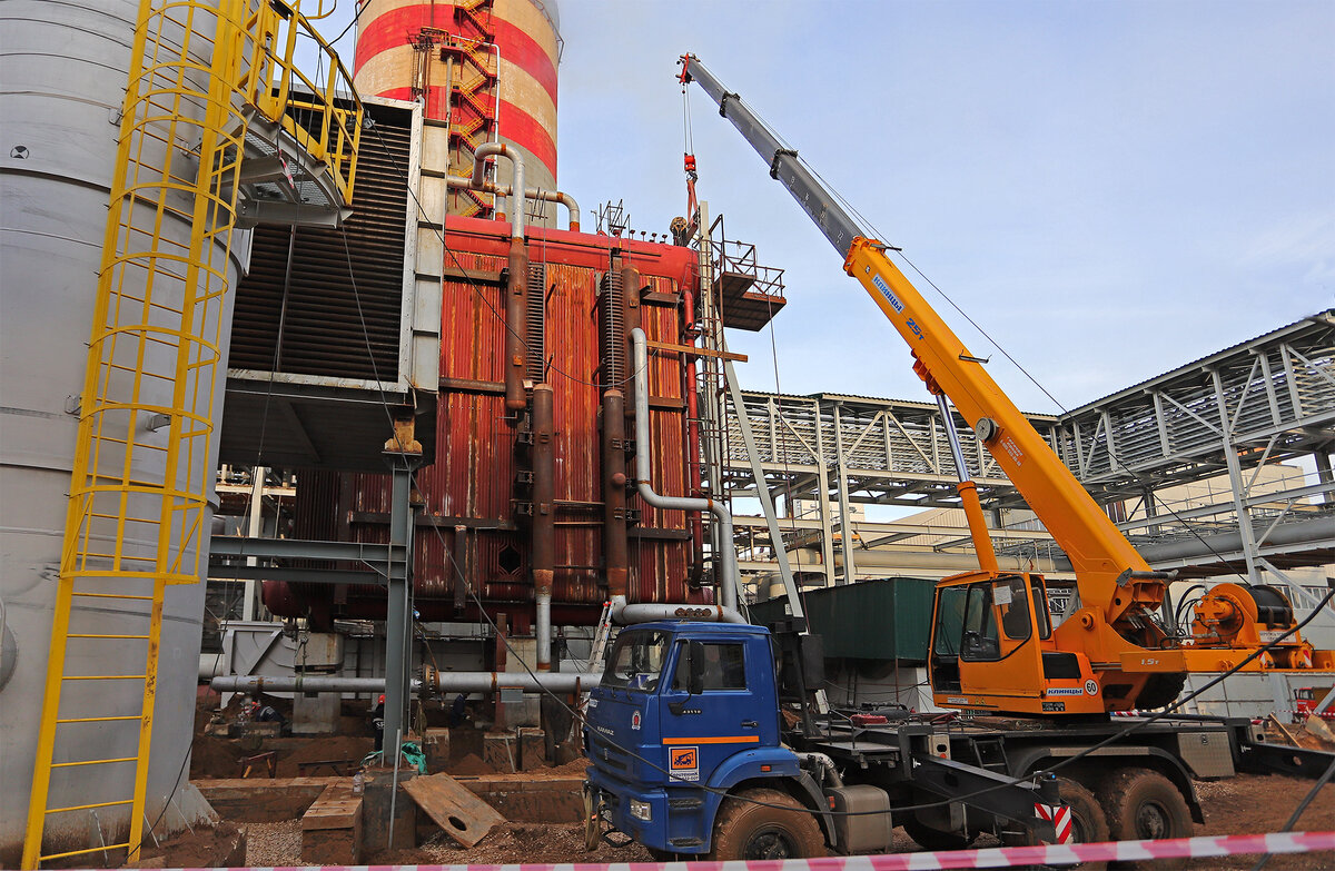 На площадке строительства третьего агрегата карбамида завершают монтаж парового котла и проводят гидроиспытания оборудования. Котёл на участке №506/3 будет производить пар высокого давления для работы паровой турбины, раскручивающей вал компрессоров. Его производительность составит 136 300 кг пара высокого давления в час. Небольшая доля пара пойдет на раскрутку турбины внутри самого котла: это нужно, чтобы турбина доставила в систему воздух и обеспечила горение метана. – Основная часть оборудования смонтирована. Интересный факт: общая длина сварного шва, выполненного на котле, превышает километр, – поделился инженер-механик компании CasaleАндрей Куцай. Пароперегреватели, паровой и водяной барабан, испарительная секция и соединяющие их трубопроводы прошли гидроиспытания под давлением, превышающем рабочее. Так, 3 ноября достигли давления в 85 атмосфер без единой протечки – гидроиспытания прошли успешно. Позже к котлу подведут трубопроводы для запитывания химически подготовленной водой и