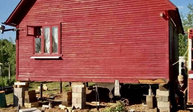 Подъем старого дома на винтовые сваи — это реально! Описываем алгоритм работ.