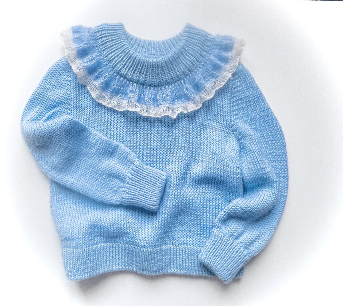 Связала детский свитерок. Ничего сложного, но этот волан! Так уже он мне самой нравится! Или как этот элемент называется? Рюш? Оборка? Хочу рассказать вам, откуда у него выросли ноги, у этого волана (или как мы его правильно назовём). И ход моих мыслей будет непрост. Ассоциативная цепочка длинная и запутанная. Вот отсюда будем распутывать клубок моих размышлений: Ну при чем здесь эта рванина к детскому свитерочку? - спросите вы. Отвечу. Этот трэш и гранж - повсюду. В журналах, в отчетах модников-стритстайлеров, в соцсетях, у рукодельниц. Молодёжь в кафе за соседним столиком… Спущенные петли, специально порванное полотно. Как будто моль проела. Как будто из сундука. Потому что сегодня можно носить что угодно, куда угодно и когда угодно. Такие вот нынче тенденции. Смотрю я на эту рвань - а как же иначе, уж не спрятаться от неё! - и думаю. Не нравится мне. Не мое. Рваные джинсы нравятся, а вот рваные свитера - не очень. Изделие как из-под моли - слишком для меня. А вот бы взять