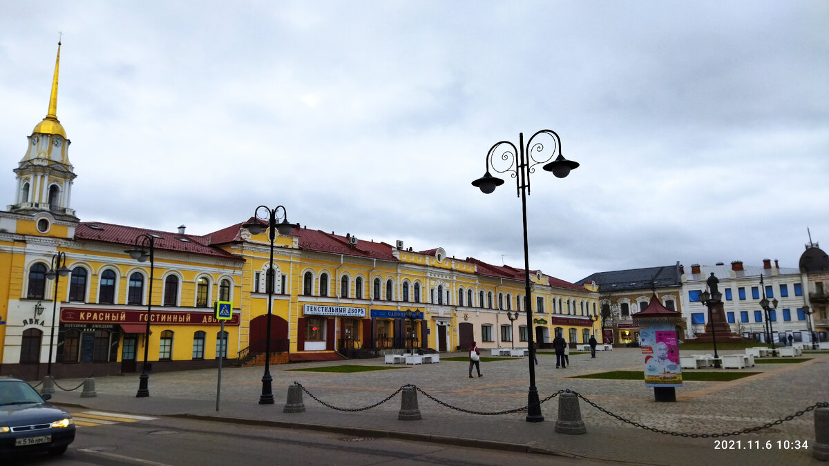 Центральная площадь города – Красная площадь, на ней и раньше, и сейчас расположены Красный и Мучной гостиные дворы, кафе и магазины. Вывески соответствующие.