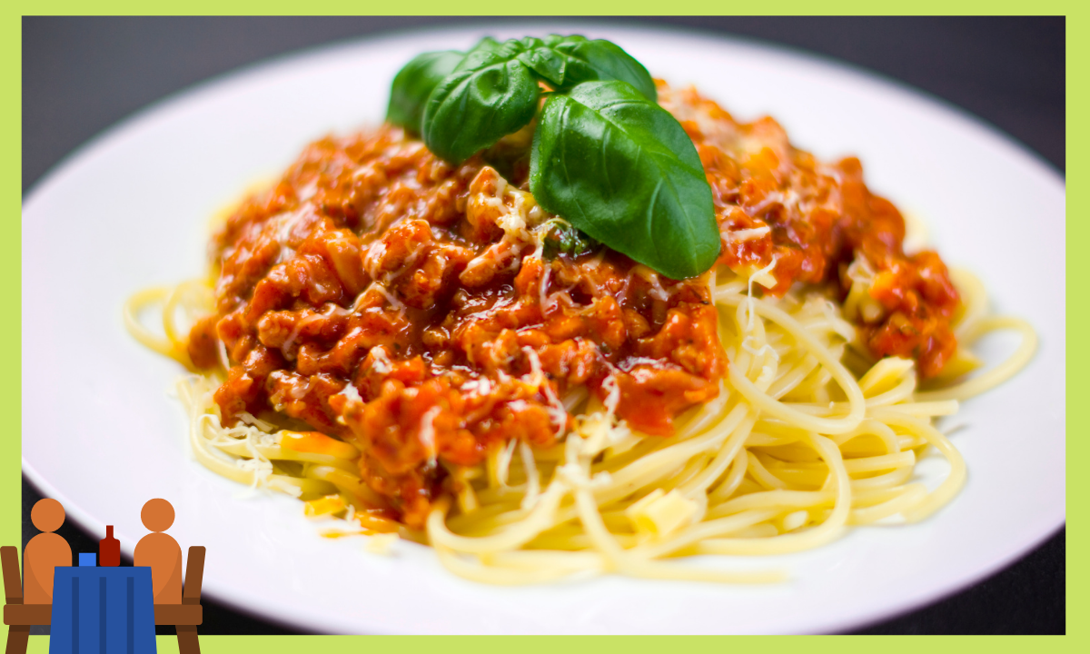 - На картинке, на фото, любимое мною блюдо: соломка из твердых сортов пшеницы под соусом болоньезе. Не совсем оно правильное, конечно: мясо нежелательно совмещать с макаронными изделиями, но это то исключение, которое я позволяю себе в зажорный день.