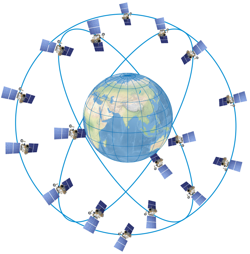 Основой системы ГЛОНАСС являются 24 космических аппарата, которые движутся в трёх орбитальных плоскостях по 8 аппаратов в каждой плоскости, наклоненных к экватору под углом 64,8°, с высотой орбит 19100 км и периодом обращения 11 ч 15 мин 44 с. Выбранная структура орбитальной группировки обеспечивает движение всех КА по единой трассе на поверхности Земли с ее повторяемостью через 8 суток. Такие характеристики обеспечивают высокую устойчивость орбитальной группировки системы ГЛОНАСС, что практически позволяет обходиться без коррекции орбит космических аппаратов в течение всего срока их активного существования. В настоящее время развитием проекта ГЛОНАСС занимается Государственная корпорация «Роскосмос» и министерства и ведомства России: Минобороны, МВД, Ростехнадзор, Минтранс, Росреестр, Минпромторг, Росстандарт, Росавиация, Росморречфлот, ФАНО. Головной организацией по развитию и использованию системы ГЛОНАСС является АО «Российские космические системы». Головная организация по космичес