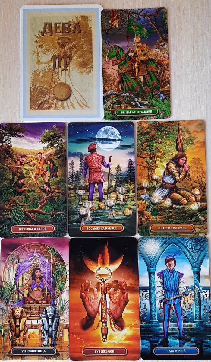 1.Что на пороге:📮 Карта может означать внутренние противоречия,сопреничество с кем- то. В этой ситуации следует проявить мужество и продемонстрировать окружающим всё на что вы способны 2.Личная жизнь❤ Здесь карта расставания с прошлым. Карта может означать конец отношениям или по крайней мере прощание с иллюзиями, которого до этого согревали вашу жизнь. Или же Вы откажитесь от уже привычного любовного ритуала. даже если каждый шаг на этом пути будет болью отзываться в сердце, вы рано или поздно заметите, как прошлое постепенно отдаляется от вас, и вы всё больше и больше будете проникаться желанием начать новую жизнь. 3.Работа⚓ Вашей жизни неожиданно случилось что-то неприятное, и это очень расстраивает Сейчас не время строить планы, дайте вашей душе возможность преодоления разочарования. Доверьтесь старым друзьям и надежным товарищам. Они вас во всём поддержат и помогут преодолеть кризисные периоды. Их тёплое участие откроет перед вами новые пути и поможет вернуть уверенность в з