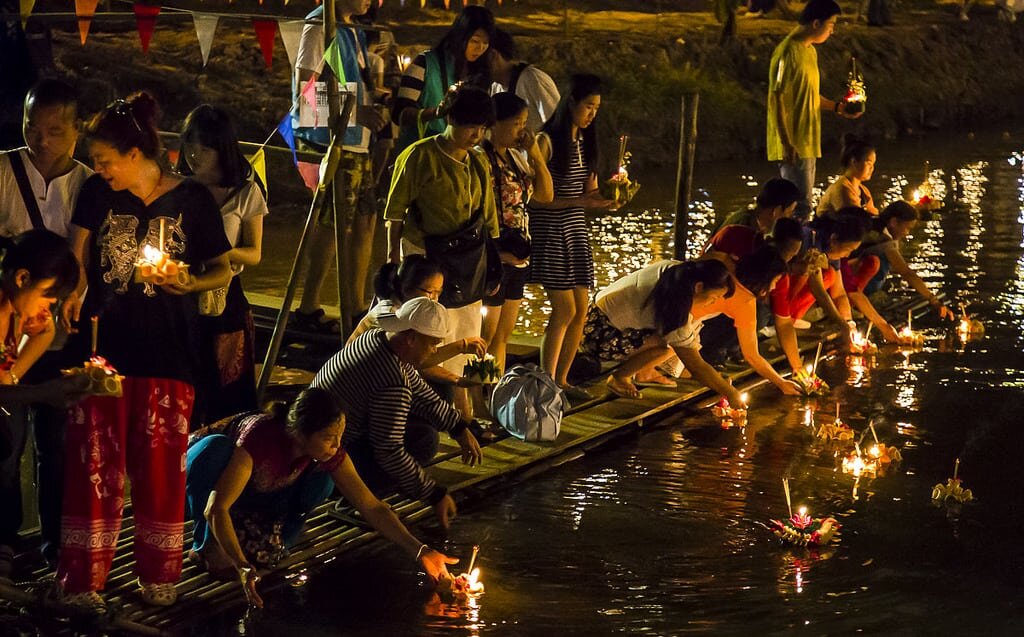 Каждый год в ноябре в Таиланде и других странах Юго-Восточной Азии празднуется фестиваль Лой Кратонг. В первый раз мы попали на него, когда только приехали в Бангкок в 2015 году. Это было очень красочно, сотни тысяч людей шли к различным водоемам и выпускали самодельные лодочки из банановых листьев, украшенные цветами и свечами. Было какое-то единение в этом действе. Мы уже после праздника прочитали, что же это такое было. Во-первых, таким образом тайцы благодарят Богиню воды за плодородный год и одновременно просят прощение за загрязнение водоемов. А во-вторых, многие кладут в эту самодельную лодочку кусочек ногтя или прядь волос, и как бы отправляют весь негатив по воде от себя подальше. По-моему, в этом есть смысл. С приходом кое-чего неприятного и заразного на букву К в 2020 году, фестиваль был отменен, чтобы народ не собирался вместе. И вот в этом году, наконец-то, Лой Кратонг снова будет праздноваться. После того, как заявление было сделано официально, один из университетов в Бан