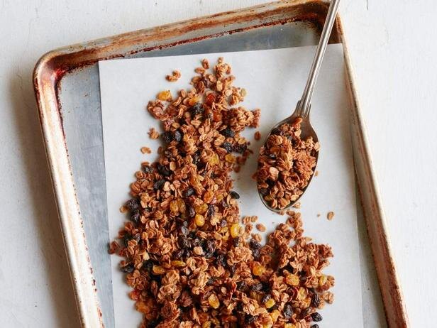 Эта десертная гранола по вкусу в точности напоминает овсяное печенье с изюмом, а получается ещё полезнее. Овсяные хлопья смешиваются с пряностями, изюмом и коричневым сахаром в смеси кленового сиропа и сливочного масла и запекается в духовке, пока масса не станет рассыпчатой и хрустящей. Можно хранить в герметичной ёмкости до пяти дней. Ешьте гранолу с йогуртом или посыпайте ею ванильное мороженое и наслаждайтесь превосходной текстурой и вкусом. Количество: 350 гр. Ингредиенты: Приготовление: