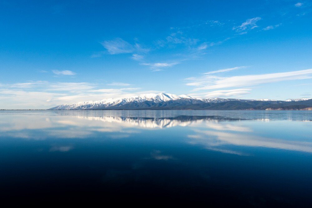 Утром подумал, почти весна. Солнце светит даже по весеннему, снег с крыш бежит ручьём. На улице в зимней одежде стало жарко, единственное, прилетающих весной чаек сейчас почти нет. Летает штук двадцать самоубийц, рискуют не успеть до тёплых стран. Бухта Монахово буквально за сутки очистилась от ледяного, пусть тонкого, но всё же панциря. Лёд разломало и унесло на другую сторону залива. Туда и держим путь. Штиль, тепло, синее небо, словно весенние белые облака. И редко встречающиеся льдины, не весенние большие поля с ломанными краями, а пока ещё блинчики. Так зарождается новый лёд. Скоро они станут больше и на них начнут отдыхать и греться нерпы. Святой Нос отразился в водах Чивыркуйского залива, ветряная полоса ряби на горизонте чуть внесла свои коррективы в общую картинку, но ведь когда всё хорошо это тоже плохо. Прошли Катунь и Курбулик. В межсезонье народу там живёт немного, а вот в высокий летний туристический сезон свободных мест не найти, как впрочем и во время зимней рыбалки. С