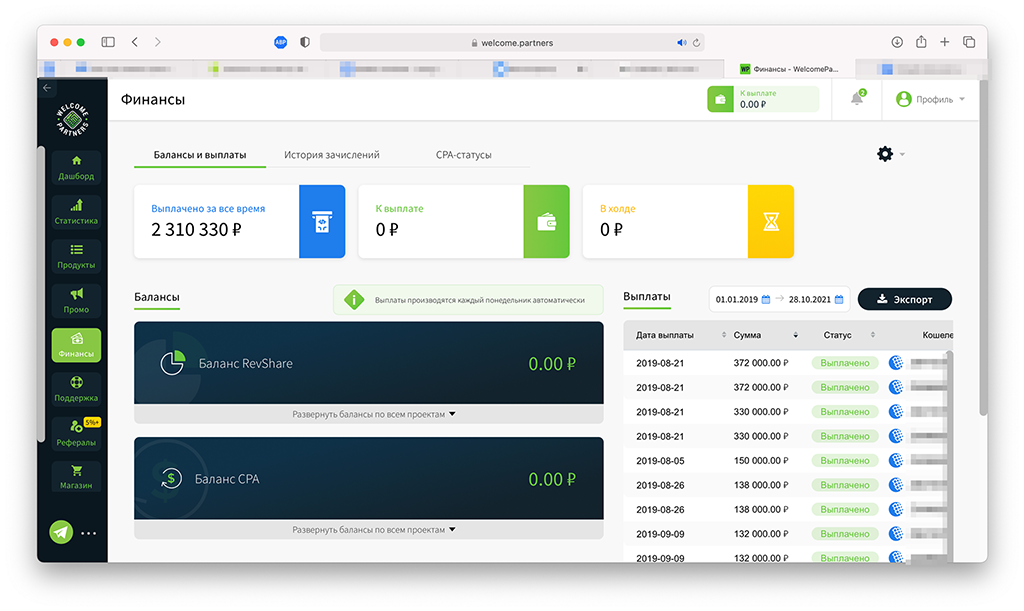 С 2017 по 2019 год я возвращался в арбитраж трафика и лил «на схемы» в разные партнерские программы. Примерно в 2018 году узнал о WelcomePartners и начал немного сплитовать трафик на тест. В 2018 году личный менеджер уведомил меня об акции «Неделя Розовой Пантеры».