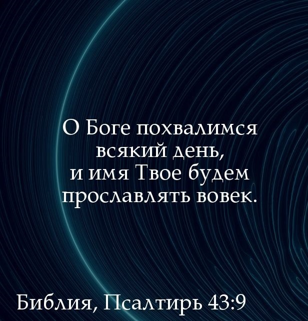 «Боже, Царь мой! Ты тот же; даруй спасение Иакову. С Тобой избодаем рогами врагов наших; во имя Твое попрем ногами восстающих на нас. Ибо не на лук мой уповаю, и не меч мой спасет меня; но Ты спасешь нас от врагов наших... О Боге похвалимся всякий день, и имя Твое будем прославлять вовек» (ст. 5-9).