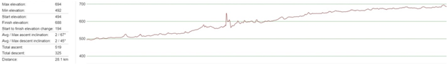 Расстояние - 28 км. Набор высот - 519 м. Сброс высот – 325 м. Высота ночевки-671 м.
