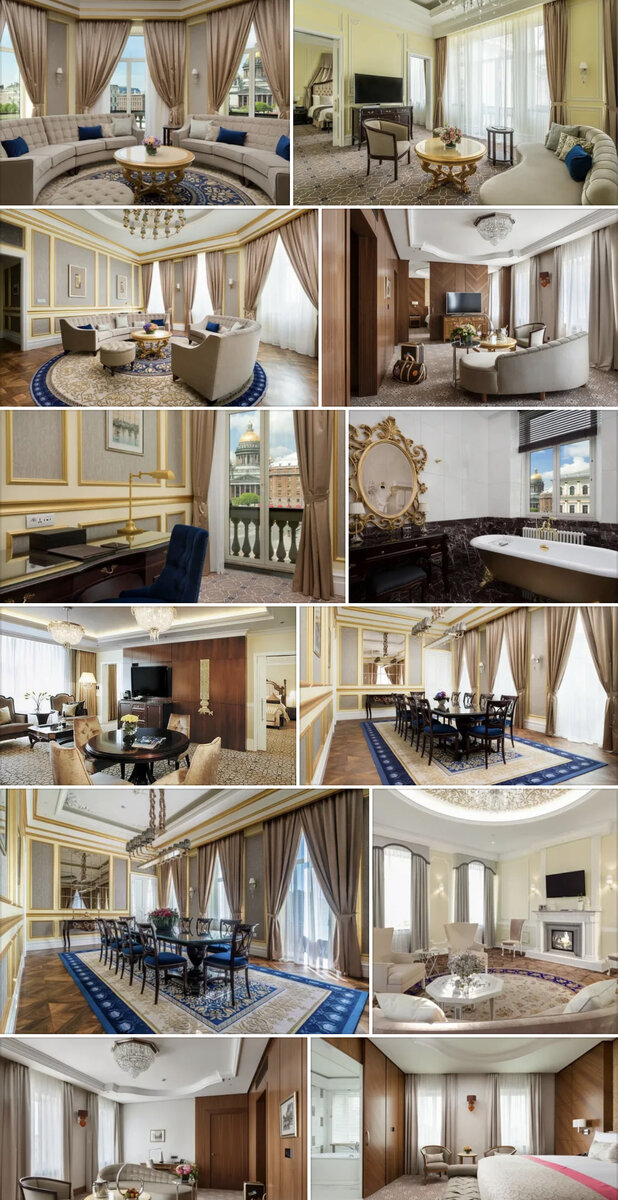 Всем привет! Сегодня хочу показать вам отели России, в которых для того чтобы прожить целые СУТКИ, надо обычному человечку, с обычной зарплатой, работать целый ГОД! Цены действительны на ноябрь 2021 года. В декабре, понятно, будет повышение цен в связи с Новогодними праздниками! Кстати в следующей статье расскажу куда поехать на Новый год в России 😉 Названия отелей - это активные ссылки переводящие тебя на официальный сайт отеля, пользуйся 😉 Итак, начнём так сказать от самого дешевого 😁: Номер 5 Отель Лотте ⭐️⭐️⭐️⭐️⭐️ Стоимость номера «Президентский люкс»: 286 172 рублей за ночь. Местоположение: Находится отель на Набережной реки Мойки. Здание: 1850 года постройки Из истории: в этом доме снимал квартиру Н.В. Гоголь Вид: #Исаакиевскийсобор, Синий мост, Мариинский дворец. Площадь номера: 120 кв.м. Номер конечно шикарный, не спорю, вид замечательный, но, в стоимость не входит не то что питание, а даже за завтрак придётся заплатить и как минимум 3 000₽, обед и ужин естественно вы