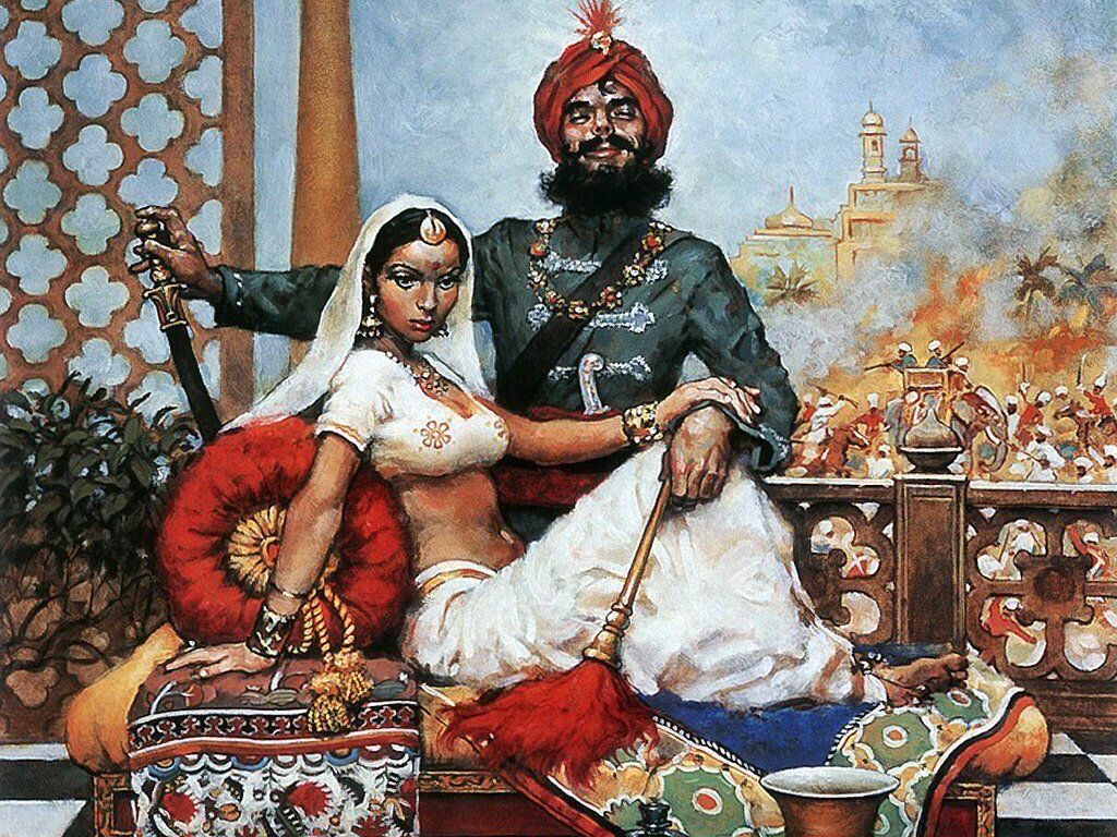 Чем ближе они подходили, тем стремительный рушились мои мечты. Тот, который выглядел богаче, был мужчиной среднего роста, с круглым лицом и пышными усами, закрученными немыслимым образом. Его лицо было тёмным с чёрными агатами глаз, которые утопали в пышных щечках. Короткие пальцы, были унизаны перстнями, а туфли просто поражали роскошью, переливаясь парчой и камнями. Ну точно раджа... О-о нет...