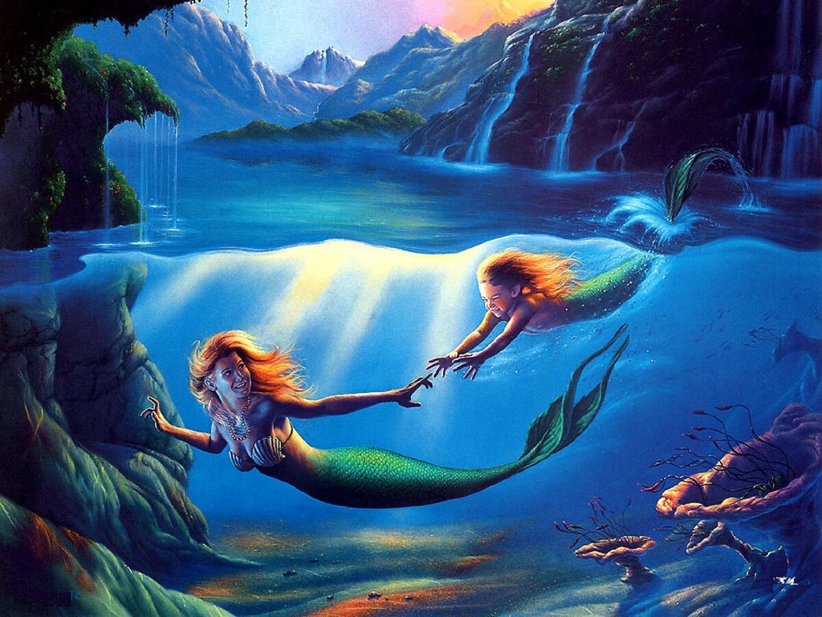Юная ундина сразу почувствовала родную стихию и трансформировалась. Внимательно смотря, как ребенок плавает в воде, Наиля постепенно позволяла воде все больше заполнять помещение. Ясмина сначала немного испугалась, но потом, увидев, что родные спокойно ведут себя под водой, тут же успокоилась и заплавала еще быстрее. Милена вскоре не удержалась, тоже приняла истинную форму и поплыла вдогонку за сестрой.