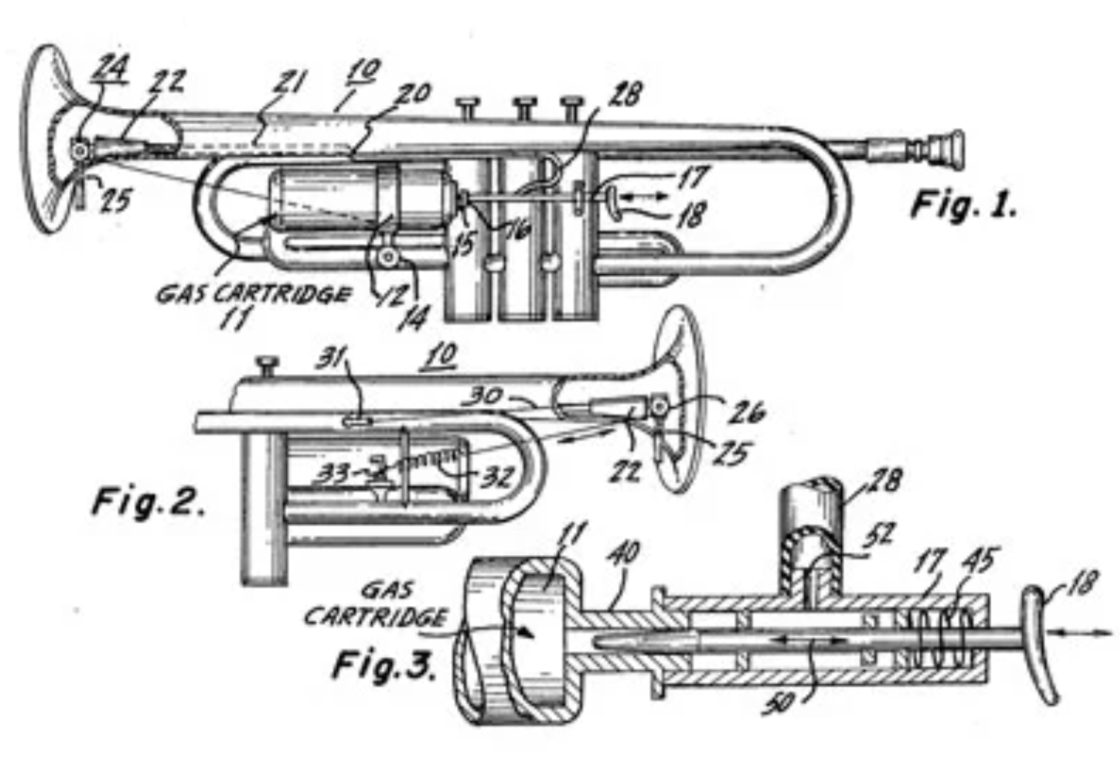 Продолжим список самых бессмысленных американских патентов. Большинство патентов никогда не окупятся, а некоторые просто поражают воображение своей совершенной бесперспективностью. Патент № 4 247 283. Музыкальный инструмент, извергающий языки пламени Если хочется немножко расцветить свою игру на трубе, можно просто приделать к ней баллончик горючего газа и кнопку зажигания. Что может быть проще! Патент № 4 320 756. Устройство для получения свежего воздуха Изобретение Уильяма Холмса не назовешь бессмысленным. Если вокруг бушует пожар, эту трубку можно протолкнуть сквозь слой воды в унитазе в канализационную трубу — и дышать пусть вонючим, но хотя бы не токсичным воздухом. Сейчас срок действия патента уже истек — но желающих запустить туалетный сноркель в производство пока не нашлось. Патент № 6 738 988. Белье системы танга на проволочном каркасе Важная веха в борьбе человечества с вечно съезжающими куда-то трусами. Ради такой победы и проволокой уколоться не жалко. Патент № 4 150 505 Ло