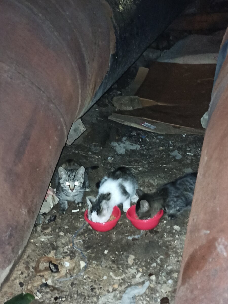 Однажды вечером, возвращаясь с работы непривычной мне дорогой, ещё издалека я заприметила странную движуху возле теплотрассы. Мои опасения подтвердились, когда я подошла поближе - там, под трубами, своими голодными и испуганными глазами на меня смотрело целое котосемейство. Пять! котят и мама-кошка. С тех пор на душе у меня не было покоя. Очень хотелось помочь котодетям, но я не знала как. К слову, дома у нас живут три котика. Поэтому ещё пятерых было бы очень тяжело потянуть. Но принося каждый день им еды, я понимала, что оставить всё как есть не могу. При поддержке мужа я приняла решение забрать малышей с улицы, где им было вовсе не безопасно. Тем более у котят есть все шансы обрести настоящую домашнюю жизнь! Спасибо большое всем людям, кто откликнулся нам помочь. Таких неравнодушных людей оказалось не мало! Далее малыши провели несколько суток в стационаре ветеринарной клиники, где им сдали все необходимые анализы и провели обработку от паразитов. Сейчас дети находятся на передер