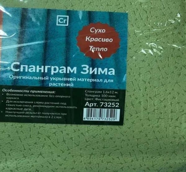 Материал дышащий, поэтому растениям парниковый эффект не грозит. Несмотря на то, что Спанграм выглядит непрозрачным, он пропускает достаточное количество света. При этом, яркие солнечные лучи весной не навредят растениям. Воду Спанграм не пропускает.