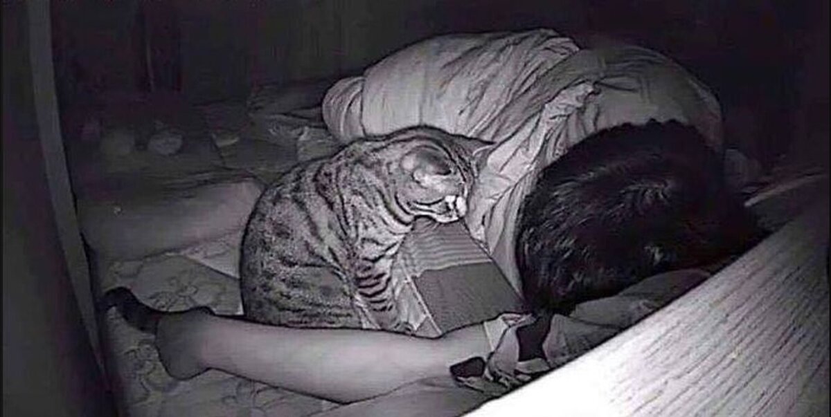 Парень из Тайланда установил "скрытую" камеру, чтобы увидеть, что делает его кошка, пока он спит