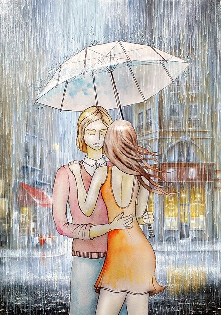 Середина осени. Гроза, ливень. Они спрятались под большим деревом и стоят поодаль друг от друга…