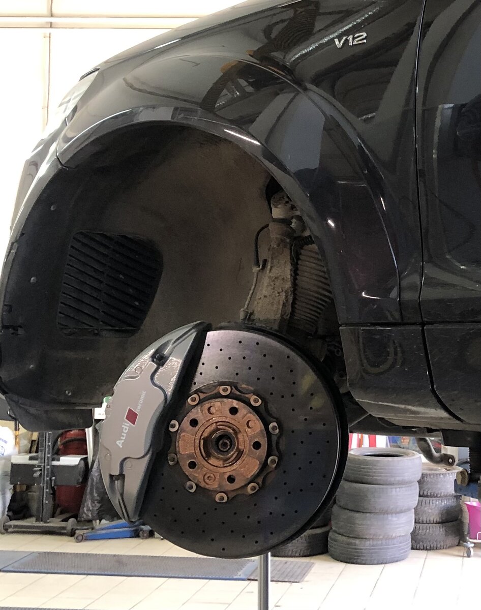 Замена колодок Audi Фрикционные накладки на колодках передних и задних тормозов постепенно изнашиваются, что приводит к снижению эффективности тормозной системы и различным поломкам. Когда толщина изнашиваемого материала уменьшается до 2-3 мм, колодки хуже охлаждаются, а поршни выходят из суппортов на большее расстояние. Это может привести к их перекосу и заклиниванию тормозного механизма. Вместе с тем снижается уровень тормозной жидкости в бачке – если за этим не следить, в систему может попасть воздЗамена колодок Audi Фрикционные накладки на колодках передних и задних тормозов постепенно изнашиваются, что приводит к снижению эффективности тормозной системы и различным поломкам. Когда толщина изнашиваемого материала уменьшается до 2-3 мм, колодки хуже охлаждаются, а поршни выходят из суппортов на большее расстояние. Это может привести к их перекосу и заклиниванию тормозного механизма. Вместе с тем снижается уровень тормозной жидкости в бачке – если за этим не следить, в систему может