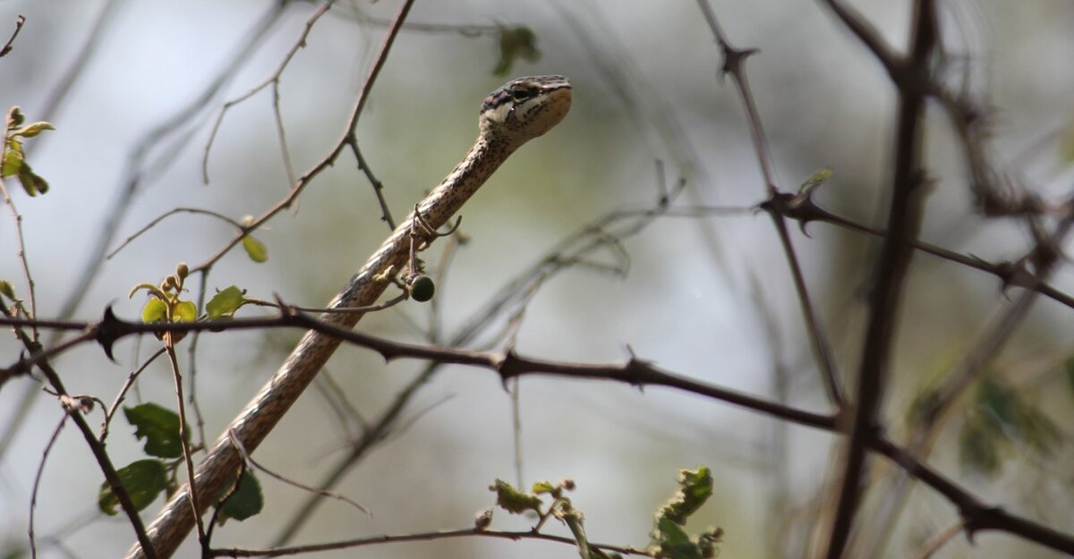 то вид пресмыкающихся из отряда Чешуйчатые, семейства Ужеобразные змеи, подсемейства Ложные ужи. Как выглядит Серая древесная змея – очень небольшое животное, длина тела которого в среднем составляет 100 – 120 сантиметров. Окраска тела может быть самой разнообразной. Преимущественно серая древесная змея имеет неприметную окраску с преобладанием темных тонов. Верхняя часть тела окрашена в серый или коричневый цвет, а брюхо имеет беловатую или бежевую окраску. Вдоль всего тела имеются пятна и полоски грязно-белого цвета. Голова серой древесной змеи имеет зеленоватую окраску в верхней части. Образ жизни Серые древесные змеи практически всю жизнь проводят на деревьях, спокойно передвигаясь по стволам и ветвям. Окраска змеи позволяет ей оставаться незамеченной среди тонких ветвей. Эти змеи предпочитают жить на лианах. Опасность!!! Серая древесная змея имеет в своей пасти два ядовитых зуба, которые соединены с ядовитыми железами. Укус этой змеи не является смертельным для человека, но