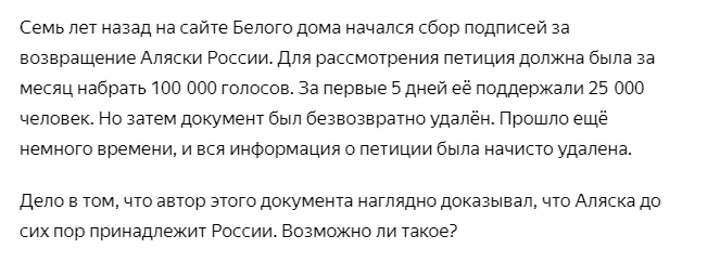 А ведь Аляска до сих пор принадлежит России. Юристы доказали, что Россия не продавала Аляску, а отдала во временное пользование