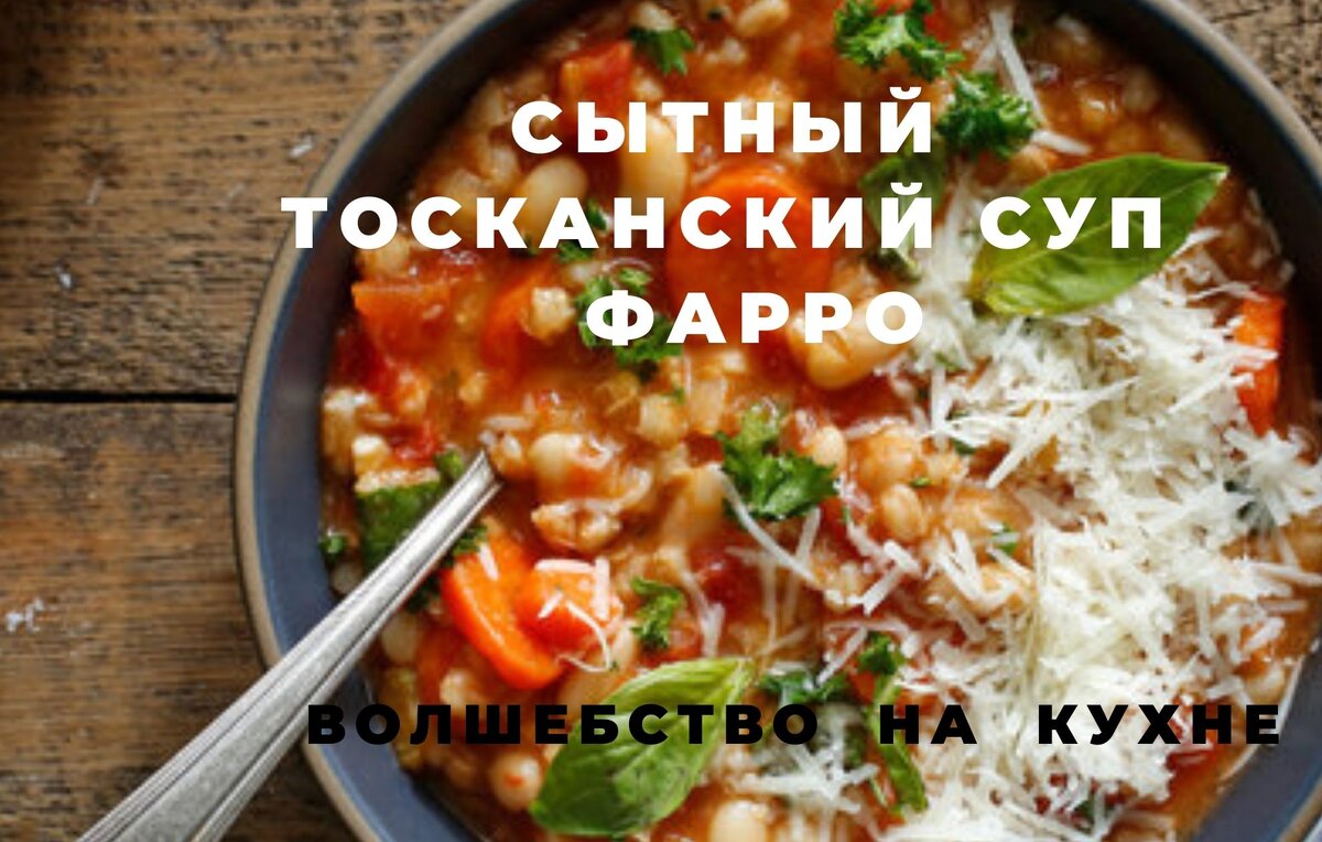 Настоящее итальянское блюдо Сегодня я хочу предложить вам рецепт итальянского супа из Тоскании. Приготовить его очень просто, но нужно заранее приготовить некоторые продукты. Это очень полезный для организма суп и он распространён в Италии, к примеру, как у нас гороховый. Время приготовления блюда - 1,5 часа Для начала нам понадобится: (рассчитано на 4 порции) Приступим к приготовлению. Вы запомнили, что фасоль и фарро необходимо залить водой и поставить в прохладное место на ночь. Теперь необходимо налить масло в большую глубокую кастрюлю и поставить на средний огонь. Через одну минуту добавить нарезанные заранее, как я писала выше, лук, сельдерей, морковь. Добавьте большую щепотку соли и немного молотого чёрного перца. Готовить необходимо до тех пор, пока в кастрюле овощи не станут глянцевыми, а лук не будет мягким. Это примерно от пяти до десяти минут. Добавьте изельчённый чеснок и перемешайте. Чувствуете, какой запах? добавьте фарро, фасоль, нарезанные кубиками помидоры, добав