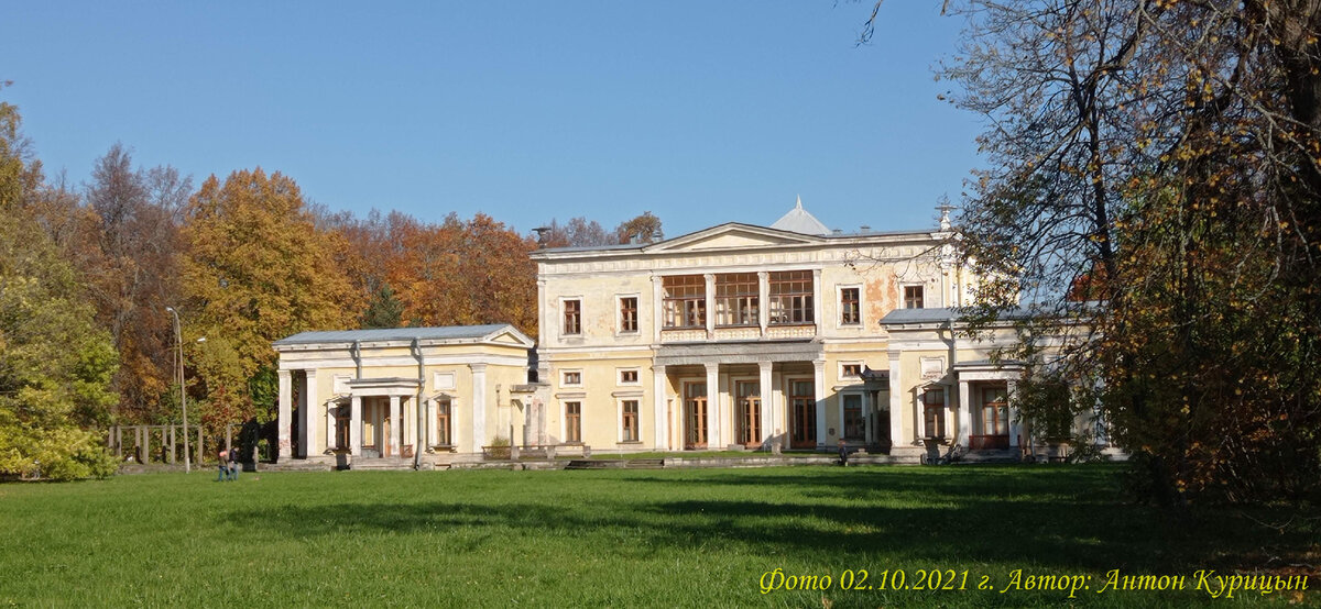 На тот момент времени на территории имения находились: большой господский дом и несколько каменных и деревянных флигелей и павильонов. В период с 1839-1940-х г.г. под руководством русского архитектора А.И. Штакеншнейдера и садового мастера П.И. Эрлера в имении проводятся масштабные работы по созданию нового дворцово-паркового ансамбля. На месте усадебного дома Румянцевых возвели дворец в стиле античных вилл: