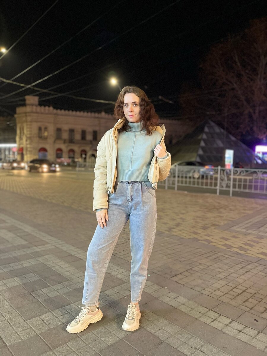Раскошелилась на хорошие джинсы, которые на мне нормально сидят. Составила образ с детским свитером. Показываю фото