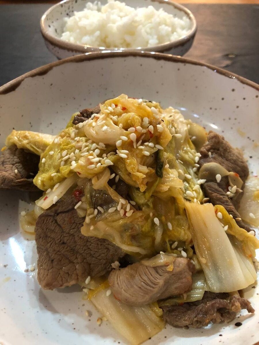 Товарищи, сегодня у нас будет огненный рецепт! Все любители острого записывайте, а те кто хочет попробовать острое впервые, запасайтесь прохладительными напитками или зеленым чаем. Сегодня будем готовить Кимчи жареное с свининой! Хотя можно жарить с чем угодно, если вдруг не любите свинину. Самое главное для этого блюда, выбрать вкусную кимчи. Это национальное корейское блюдо, по этому где покупать, вопрос отпадает. Ну а кушать надо обязательно с отварным рисом. И так, нам понадобится: Способ приготовления: Нарезаем свинину тонкими ломтиками, обжариваем на сковороде. Далее добавляем грибы и нарезанную кимчи. Обжариваем буквально 3-4 минут, затем добавляем специи. Тушим 2-3 минуты, пробуем. Если будет не солено, можно добавить еще дошиды, она придаст соленый вкус. В конце добавляем свежую кинзу. Выкладываем готовую кимчи, кушаем с отварным рисом и не забываем про стаканчик холодного напитка или зеленого чая. Всем огненного вкуса! #капуста кимчи #корейская кухня #корейские блю
