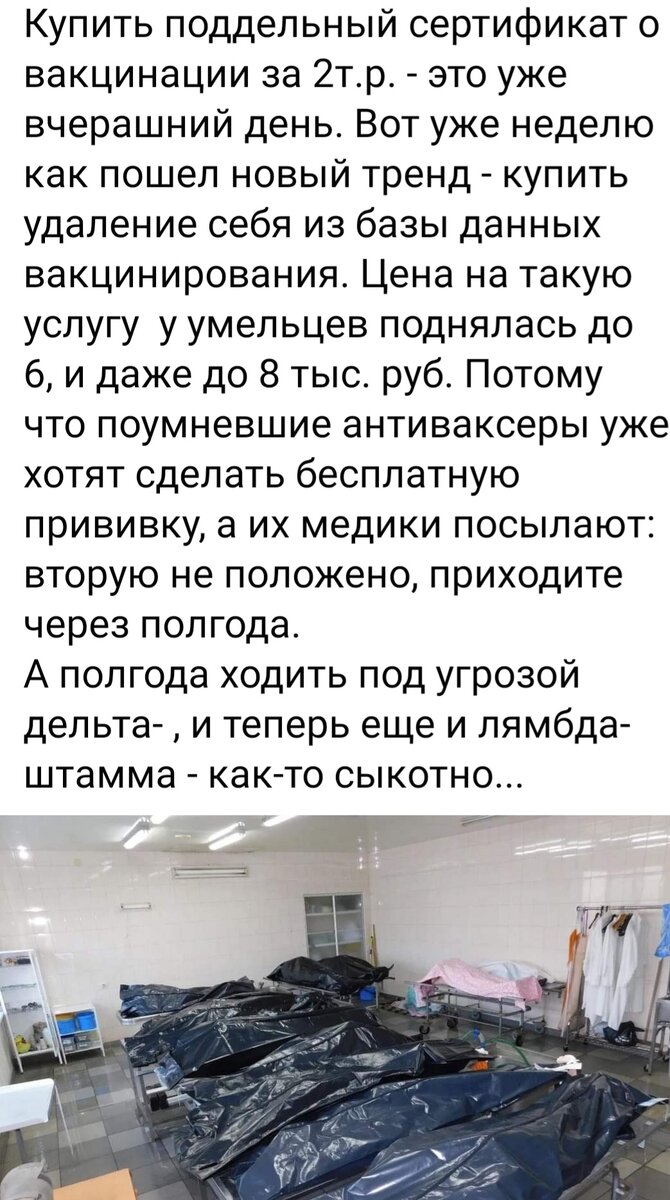 Мой маленький соцопрос среди знакомых антиваксеров. Мне нужно было понять и принять/или нет их позицию. Поэтому я опросила своих друзей и знакомых. Не спорю принципиально ни с кем. Уважаю их выбор. Но выводы сделала для себя. ОСНОВНЫЕ ВОЗРАЖЕНИЯ 1."Не доказана безопасность" А ничего, что миллиард людей уже привит? И никто от прививки не умер? Особенно при наличии купленных ковид- паспортов подобная информация считается сомнительной. Все цифры есть в профильных журналах и на сайтах Минздравов всех стран и ВОЗ. Думающие люди сами ищут информацию «Спутник V» зарегистрирован в 69 странах с общим населением более 3,7 миллиарда человек, или около половины населения Земли. По количеству полученных одобрений государственными регуляторами «Спутник V» занимает второе место в мире." https://madeinrussia.ru/ru/news/4844 2. "Исследования не закончены" Очень даже закончены, о чём есть информация на сайте ООН https://sdgs.un.org/partnerships/accelerated-development-and-implementation-prophylacti