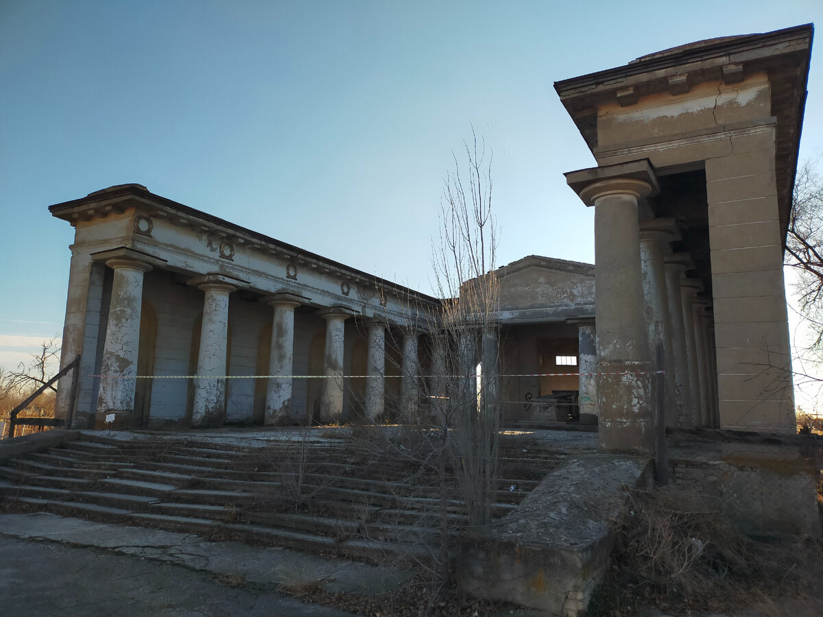 В городе Волжском есть уникальный объект - единственный (во всяком случае так утверждают в интернете) сохранившийся в СНГ мортуарий. Думаю, большинство из вас и слова-то такого не слышали. Что лишь подтверждает редкость самого сооружения. Но лучше ж один раз увидеть. И на днях я решил превратить несостоявшееся свидание в прогулку по городскому кладбищу. Не то чтобы это мой любимый маршрут - забрел я сюда впервые. Но планировал посетить давно. Именно из-за пантеона. Вообще же, будучи существом жизнелюбивым, предпочитаю держаться подальше от мест подобной тематики. Но мортуарий впечатляет. Это строение для проведения траурных мероприятий. Для тех, кто любит дорого и пафосно. Точнее, любил. Ибо объект давно не используется и постепенно приходит в упадок. Его даже огородили лентой, запретив заходить за нее. Но кого это в России останавливало? Воздвигли пантеон в 50-е годы. Сталинская архитектура вообще следовала канонам классицизма. Отсюда явное подражание античности. А особый эффект созда