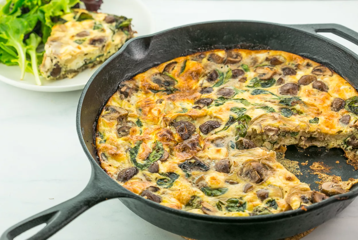 Яйцо 4 шт., куриное мясо 120 г, грибы свежие или шампиньоны 80 г, лук 40 г, масло сливочное 30 г, соус «Южный» или томатный острый 60 г, специи, пряная зелень.