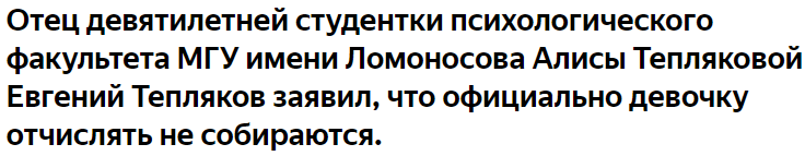 Правда ли, что Алису Теплякову снова хотят отчислить за неуспеваемость. Её отец уточнил информацию
