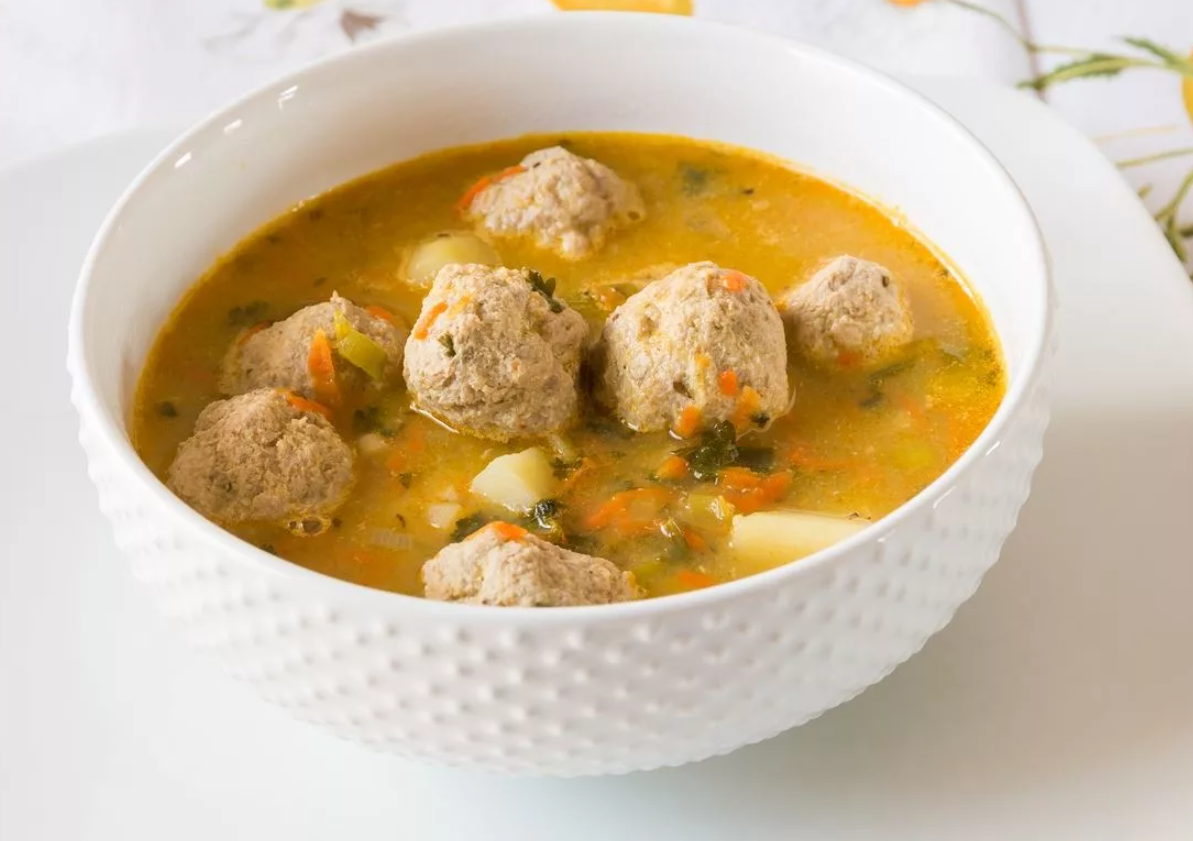 Суп из фрикадельки с картошкой Суп из фрикаделек — это отличная возможность накормить вкусным сытным супчиком всю семью. В данном рецепте супа используется картофель, но можно добавить другие овощи (например, болгарский перец или морковь) или зелень. Количество ингредиентов я привожу из расчета на 3 литра воды Приготовление: 1. Приготовить вкусные сочные фрикадельки. Для этого можно взять куриный или говяжий фарш. Из фарша сформировать шарики, в каждый из которых можно поместить чеснок, если любите вкус мяса.