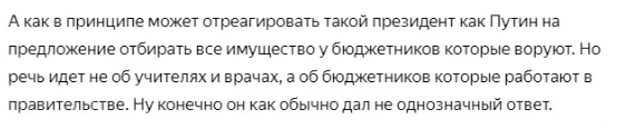 Вот такая реакция президента на инициативу "Справедливой России" об конфискации имущества у коррупционеров которые у власти.
