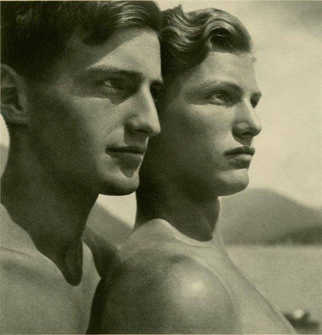 Фото: By Rudolf Koppitz Die Brüder, (Два Брата) 1928 Приведу выдержку из статей интернет ресурса, без купюр, кабы создать полное представление.... "В качестве антропологического и биологического образца «истинного арийца» был взят коренной голубоглазый житель северных областей Германии, который отличается высоким ростом (женщины не менее 170, мужчины не менее 175 см.), светлой, практически белоснежной кожей, густыми волосами, цвет которых варьируется от абсолютно белых до золотистых. Считалось, что на тех участках тела, где проступают вены, кожа имеет чуть голубоватый оттенок, и ей не должно вредить солнечное облучение. Мужчины-арийцы обладают узкими бедрами и широкими плечами, в женской фигуре преобладают «длиннотные» параметры, кроме того, у нее должны быть узкими шея, руки и утонченные черты лица. У идеальных мужчин и женщин размах рук должен составлять 94-97% длины тела. Кроме этого, у арийца вес должен быть пропорционален росту, а поясница – находиться примерно на высоте 52-53% от