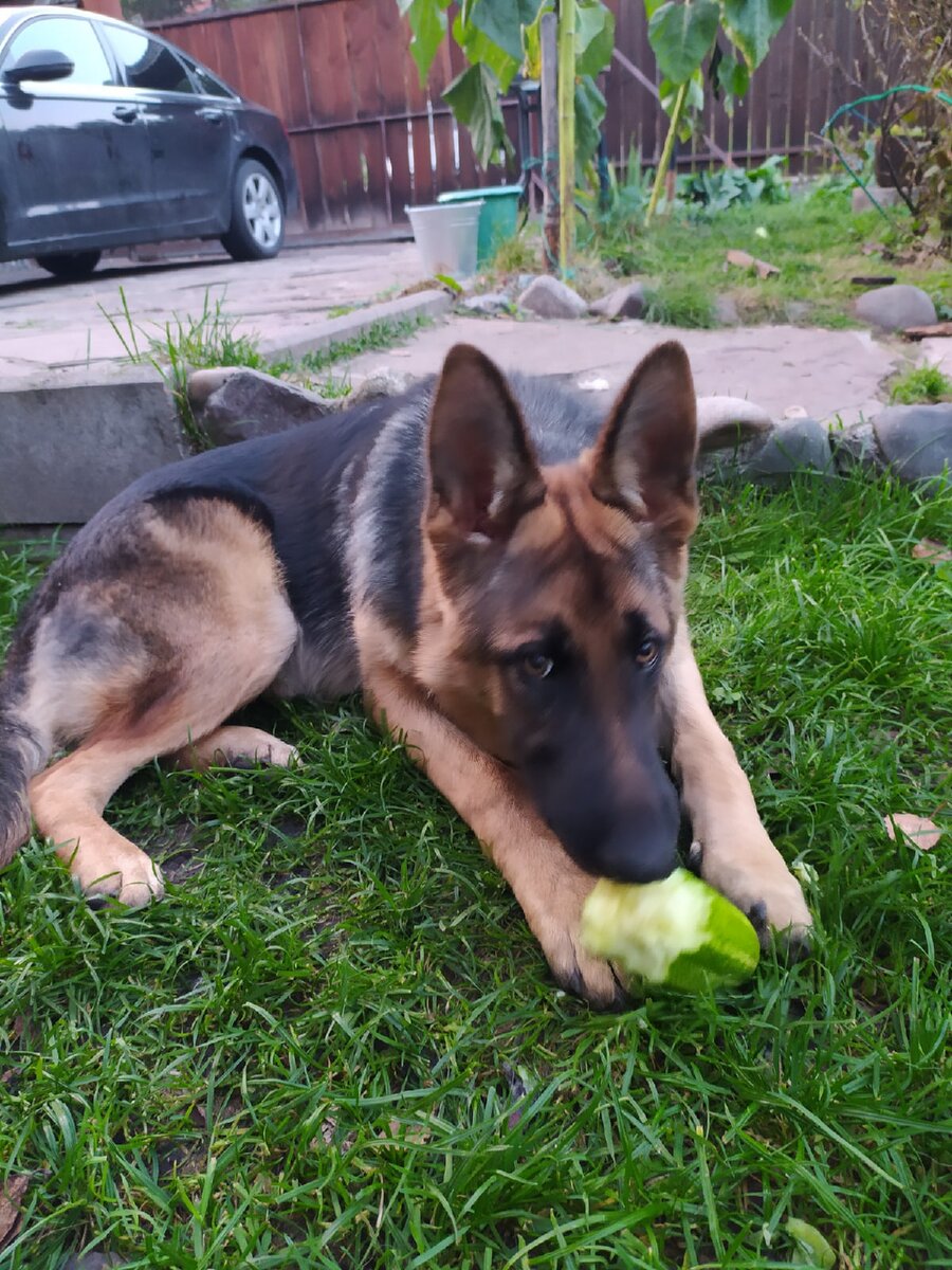 Овощи . Варим, парим, сырые - как хотите. Только помидоры советуют обязательно очищать от кожуры, иначе она может закупорить желудок овчарки и спровоцировать проблемы с пищеварением.