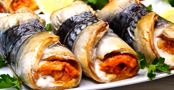 Сегодня хочу поделиться рецептами горячих блюд из рыбы, которые буду готовить на новогодний стол. Рецепт 1. Рыба под вкуснейшей шапкой. Отличное блюдо, попробуйте! Самые обычные продукты, да и готовить не сложно, а в результате рыба получается просто превосходная нежная и сочная. Я готовлю ее обычно для праздничного обеда или ужина. Рецепт: Рыба филе (горбуша) – 500-600гр. Луковица -1шт. Шампиньоны -300гр. Яйцо -3-4шт. Сыр -150гр. Сметана -200гр. Соль – по вкусу Черный перец – по вкусу Сок лимона – по вкусу Растительное масло -5-6 ст.л. Подробный рецепт смотрите в моем коротеньком видео ниже: Рецепт 2. Запеченная скумбрия. Получается нежная, ароматная по вкусу мне она немного напоминает рыбку горячего копчения. Готовится просто, проще не придумаешь, а в результате очень вкусная рыба, которую можно подать к столу и в горячем и холодном виде. Рецепт: Скумбрия с/м-3 шт. Луковица -2-3шт. Хрен -2ч.л. Горчица -2ч.л. Сметана -3ст.л. Соевый соус -1ст.л. Подробный рецепт смотрите в моем коро