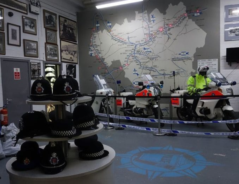 Шлемы и мотоциклы на выставке в Музее полиции Большого Манчестера