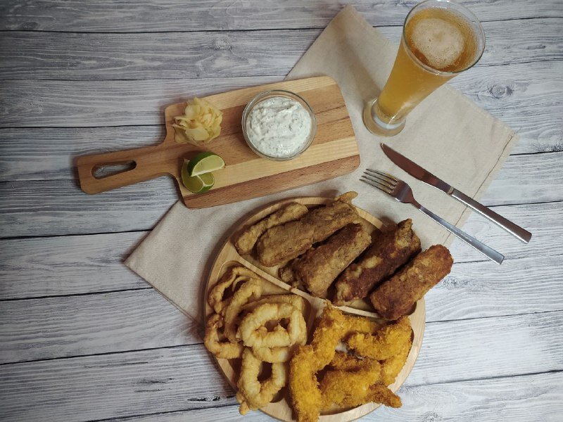 Очень добрый день! Этой статьей мы продолжаем тему закусок поднятую в предыдущей статье. И если в прошлом выпуске набор закусок был универсальный как швейцарский нож, то сегодня мы поговорим с вами о более узконаправленной кулинарии, а точнее о пивных закусках. Но перед тем как с головой окунуться в чарующий мир четких граммовок, рецептов, летящего во все стороны кляра и кипящего масла мы озвучим важное! Сортов пива много, очень много, настолько что по разнообразию вкусов пиво не уступает вину. Дабы не запутаться рецепты мы будем давать на самые распространенные, популярные виды, лагер и пилзнер. Про сочетание лёгкого пшеничного с фруктами и стаута с мороженным мы поговорим в другой раз. Итак, к делу! Креветки темпура С креветками все просто, чем они больше, тем удобнее их есть, больше сочности в них остается, больше денег вы оставляете на кассе, но сейчас не об этом. Проще всего найти креветки замороженные уже вареными их мы и взяли. Креветки размораживаем, чистим. Обнаженные тушки