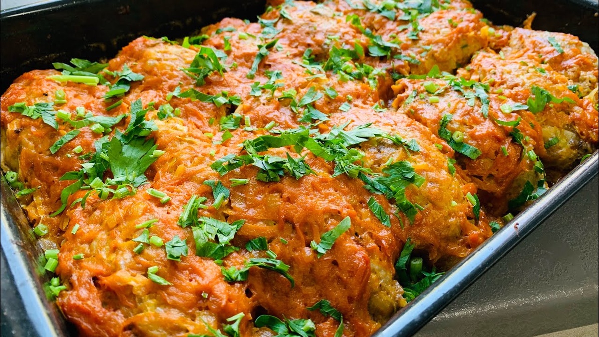 Продукты Фарш мясной - 400 г Капуста белокочанная - 400 г Рис круглозёрный - 0,5 стакана Яйцо - 1 шт. Лук репчатый - 1 шт. Морковь - 1 шт. Чеснок - 2 зубчика Масло подсолнечное - 1 ст. ложка Перец чёрный молотый - по вкусу Соль - по вкусу Для соуса: Томатная паста - 2 ст. ложки + 1 стакан воды или томатный сок - 1 стакан Для подачи: Сметана - по вкусу Зелень свежая - по вкусу Как приготовить ленивые голубцы в духовке: 1. Капусту мелко нарезать и залить кипятком минут на 10. Откинуть капусту на дуршлаг и дать жидкости стечь. 2. Рис помыть и отварить на небольшом огне до полуготовности, примерно 10-12 минут после закипания. 3. Лук очистить и мелко нарезать. Морковь очистить и натереть на крупной тёрке. Чеснок очистить и выдавить через пресс. 4. Обжарить лук и морковь на подсолнечном масле в течение 7 минут на среднем огне. 5. Смешать фарш, капусту, рис и обжаренные овощи. Добавить яйцо, чёрный молотый перец, измельчённый чеснок и соль. Всё хорошо перемешать. 6. Из фарша мокрыми руками сф