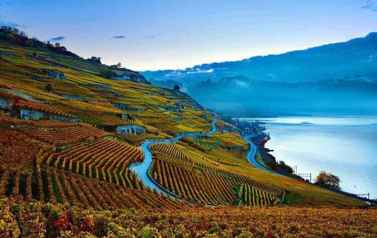 Живописные террасные виноградники Лаво (Lavaux) расположены вдоль берега Женевского озера. Обрамленные средневековыми каменными стенами, они простираются на 30 км и являются самым известным винодельческим регионом в Швейцарии и выдающимся примером взаимодействия природы и людей на протяжении многих веков. Великолепные виды виноградников Лаво и горных пиков Савойи на горизонте вдохновляли не только виноделов на производство великолепных белых вин, но и многих артистов и художников, завороженных этой красотой. Виноградники Лаво, возделываемые еще с эпохи древних римлян, внесены в список памятников всемирного наследия ЮНЕСКО. Особенно прекрасно здесь осенью, в конце сентября — начале октября, когда местные виноградники окрашиваются в золотой цвет, а воздух особенно прозрачен. Как раз сезон молодого вина!