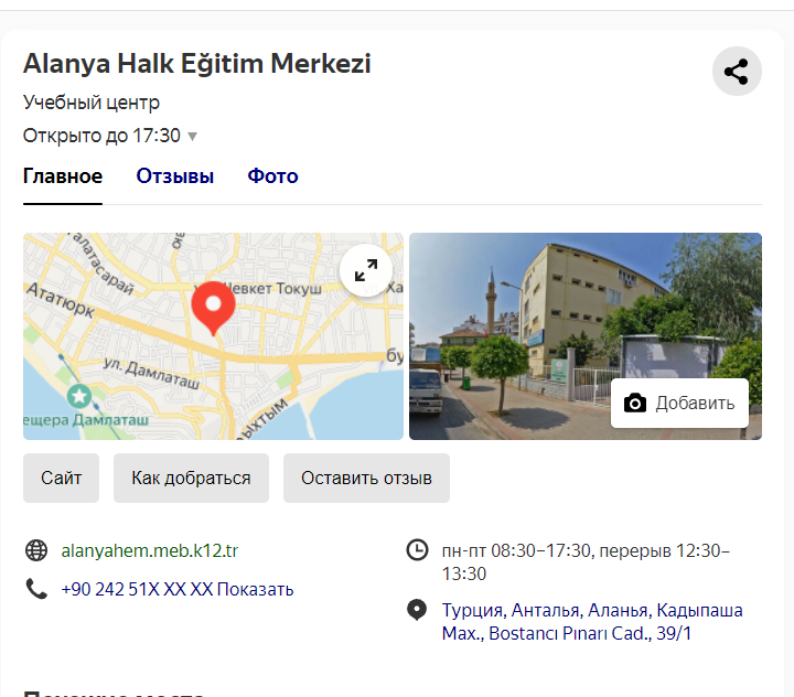 Приветствую всех в своем блоге. Тема с турецким языком очень популярная среди любителей Турции. Множество вопросов, где же можно выучить турецкий язык? Способов много, но все мы разные и склад ума так же разный, мне вот не подходят способы, либо только самостоятельных занятий дома и просмотра фильмов, либо онлайн курсы. По мне, самый действенный способ, это контактировать напрямую с учителем, выполнять домашние задания, тесты и контрольные. В общем, нужна полное погружение в изучение языка. Поэтому, я иду на курсы! Долго искала в интернете нужные курсы, ведь учителей много, в инстаграм так же, много различных групп, которые набирают себе учеников. Стоимость так же сильно отличается. Но в один день, наткнулась на статью, где было сказано, те кто получили ВНЖ в Турции, могут пойти на Муниципальные курсы от администрации Алании, где преподают курсы А1, А2, Б1 уровня. Итак, я сразу же нашла все контакты и связалась с этим центром. Группы они собирают в определенные периоды, звонила в с