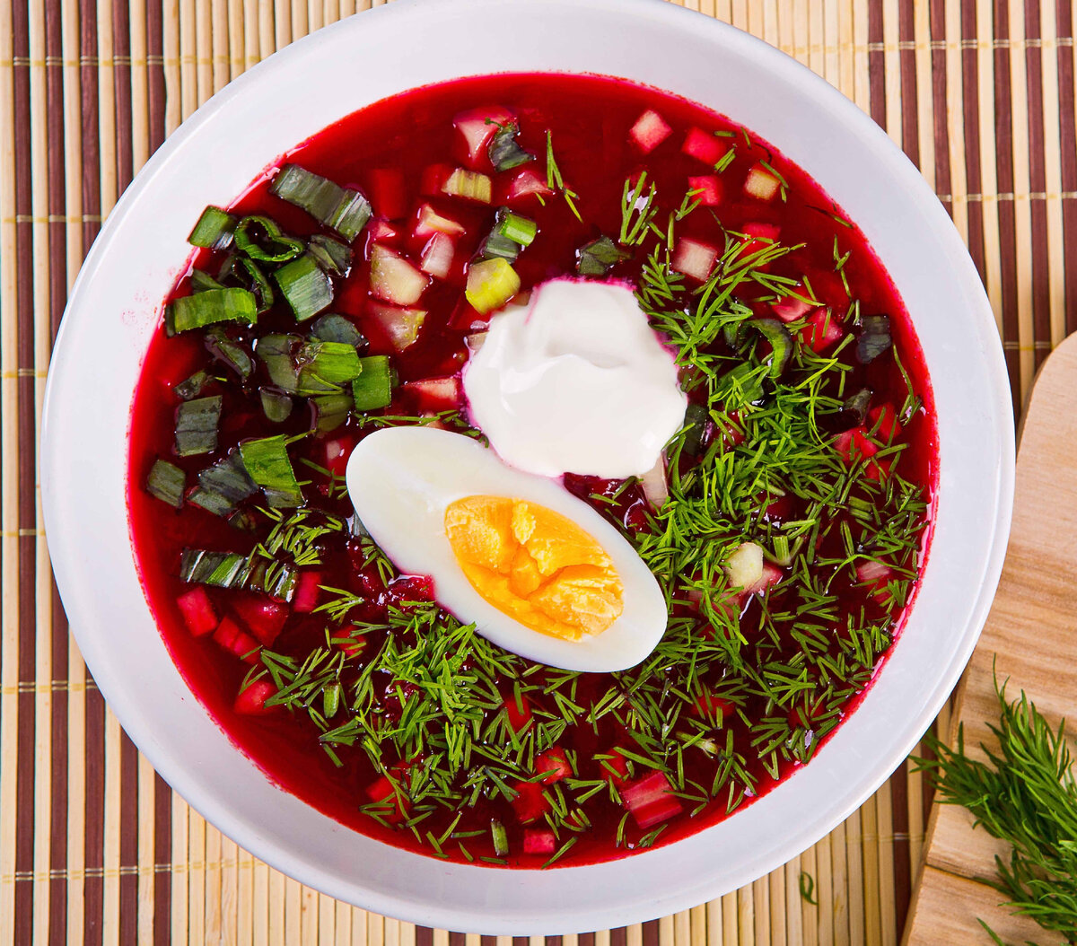 Свекольник или, как его еще называют, «холодный борщ» — традиционное восточноевропейское блюдо. От борща он все-таки отличается тем, что готовится без мяса, но зато в него часто добавляют ботву. Такой суп обычно готовят летом: в жаркое время это отличный способ освежиться. В качестве основы мы используем вареную свеклу, но вы можете выбрать маринованную, а также добавить яйцо и другие ингредиенты по вкусу. ПРОДУКТЫ ДЛЯ БЛЮДА: Картошка2 шт. = 400 г Репчатый лук1 шт. = 80 г Вода1 л = 1000 г Морковь1 шт. = 80 г Свекла200 г Растительное масло20 мл = 20 г Чеснок1 зубчик = 2 г Томатная паста20 г Лимонный сок20 мл = 20 г Сахар по вкусу Соль по вкусу Черный перец молотый по вкусу Добавьте в суп свекольную ботву, чтобы он получился более необычным и питательным. ПОДГОТОВИТЬСЯ: Очистите картофель, морковь, лук, свеклу и, не смешивая эти ингредиенты, нарежьте кубиками; натрите на мелкой терке чеснок. НАЧАТЬ ГОТОВИТЬ: 1. В кастрюлю с водой выложите картофель, залейте водой и варите в течение 20