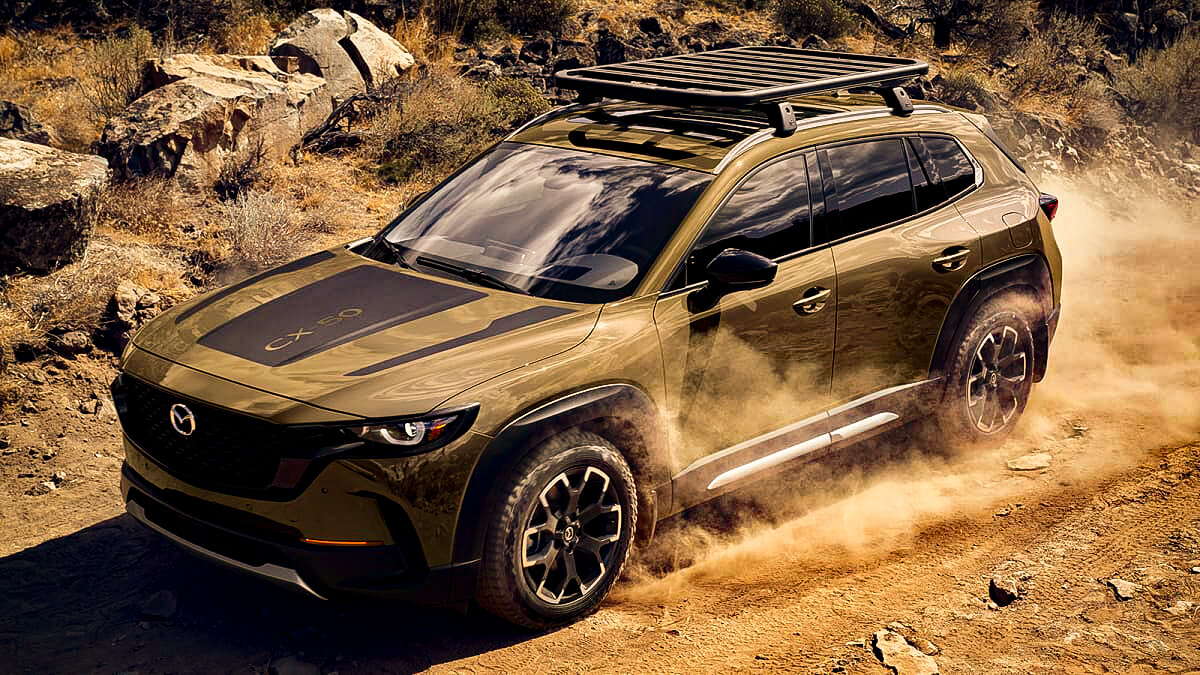 Mazda анонсировала целую расширенную линейку свежих внедорожников, которые появятся в ближайшие несколько лет, и первый из них наконец-то был показан. Mazda CX-50 2023 года заполнит нишу между CX-30 и CX-5. И у него будет ряд интересных функций, включая гибридный силовой агрегат. Дизайн выглядит как более прочная и мощная версия CX-5. У автомобиля более широкие крылья с детализированными пластиковыми вставками. Решетка радиатора имеет смелую раму и может быть выполнена в черном глянцевом цвете. На капоте даже имеются спортивные матово-черные наклейки. Mazda также отметила, что задние двери были снабжены особенно широкими отверстиями, чтобы было легче наступать на пороги для доступа к багажнику на крыше. Интерьер напоминает другие мазды, с его минималистичной приборной панелью и большими скрытыми вентиляционными отверстиями. Так же ожидаются такие элементы, как вертикальные вентиляционные отверстия вокруг панели приборов, которые сделают её уникальной и более квадратной по форме. Ма