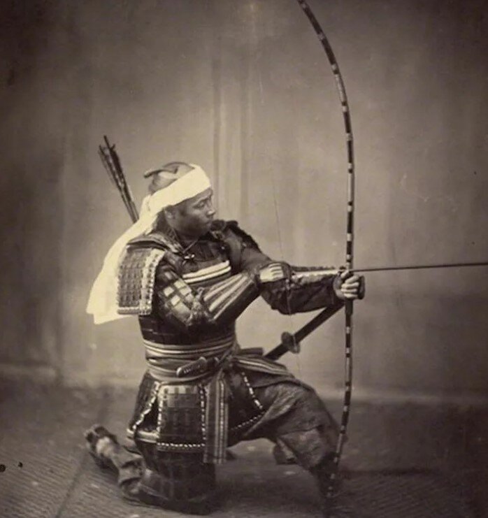 С самых древних периодов японской истории многие великие личности приобретали славу несравненных лучников, демонстрируя исключительное мастерство в обращении с оружием своей эпохи в соответствии с систематизированными принципами тактического применения, что свидетельствовало о том, что они проходили подготовку у опытных учителей. Когда клан Мононобэ в конечном итоге был разгромлен кланом Сога, Ёродзу, вассал Мононобэ-но Мория, отказался сдаться и, покинув свой сторожевой пост в Нанива, попытался укрыться среди холмов. Преследуемый лучниками клана Сога, он спрятался в бамбуковой роще и при помощи целого ряда хитроумных уловок держал своих преследователей на расстоянии. Так, например, он привязал к бамбуковым стеблям веревки и, дергая за них, создавал иллюзию движения, направляя таким образом стрелы врагов в ложном направлении, в то время как его собственные продолжали сеять среди врагов смерть и панику. Наконец, раненный в колено, он поднялся на возвышенность и продолжал отстреливаться, пока не израсходовал все стрелы. После этого он бросил свой меч в реку и пронзил себе горло кинжалом (Tsunoda et al., 42–43).